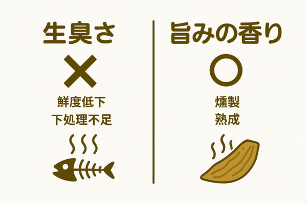 今回は、匂いをイメージしやすい鰹節を例に挙げて、「生臭さ」と「おいしい香り」の違いをわかりやすくご紹介します。