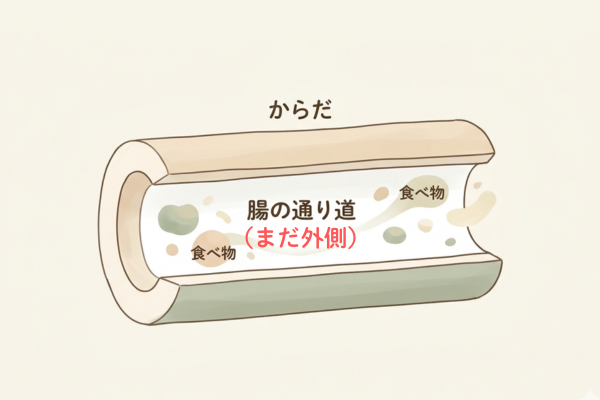 そこを通っている食べ物や細菌は、まだ体の「外側」にある存在。