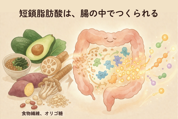 つまり、短鎖脂肪酸は腸の中で生まれる成分なんです。